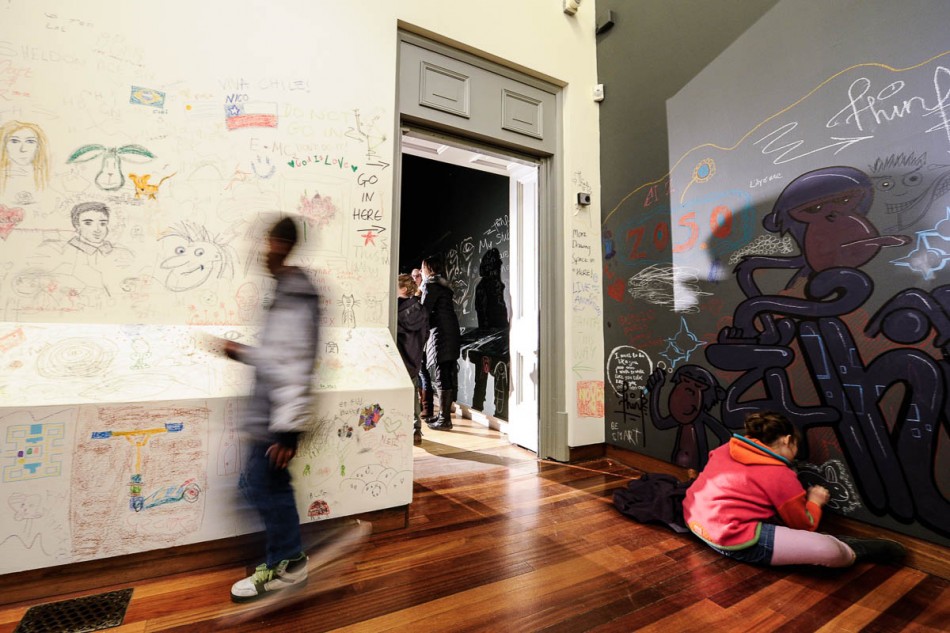 Children draw on the walls of the gallery. York Art Gallery has today opened it’s doors and walls for visitors to graffiti. The event is the last day before the gallery closes for a two year renovation project. (CREDIT Jonathan Pow | 07901 617571 | jp@jonathanpow.com)